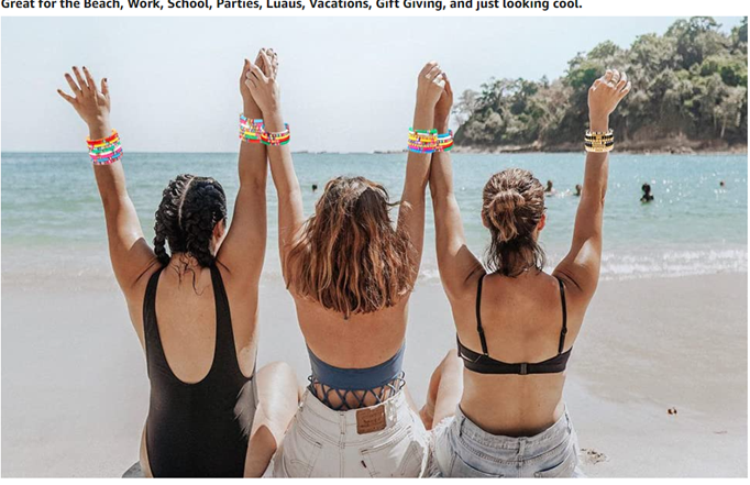 - ★ Perfect Present for You: The beach surfer bracelet has strong ethnic style -- Hawaii style and African style, whatever you are white skin or black skin or yellow skin, the multicolored heishi strand bangle can make you more charming. Great for the Beach, Work, School, Parties, Luaus, Vacations, Gift Giving, and just looking cool. The perfect gift for your holiday share with your friends and family