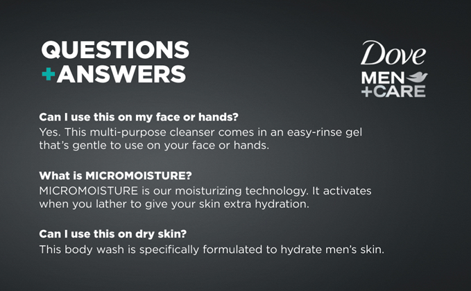Dove Men+Care Elements Blue Eucalyptus+Birch Body and Face Wash is specifically designed for men’s skin to leave it hydrated and comforted. Our body wash is powered by MicroMoisture Technology and formulated with plant-based moisturizers and skin-strengthening nutrients to rebuild and strengthen skin.