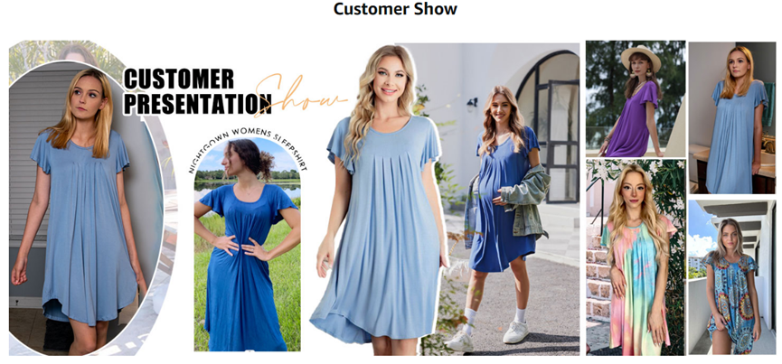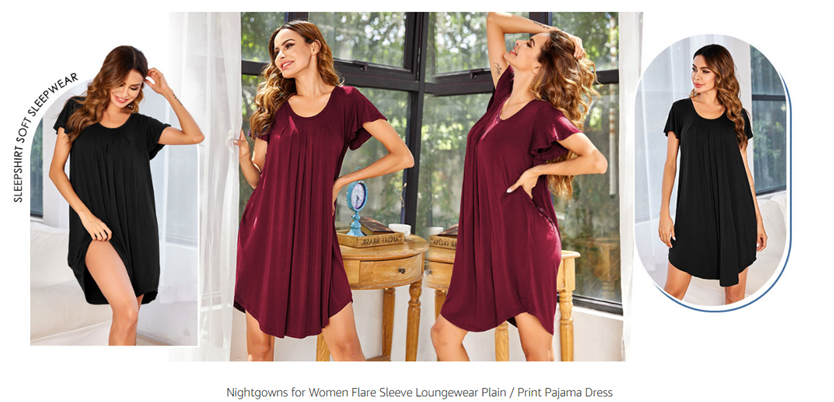 • ✿UNIQUE DESINGN: Womens nightgown is above knee length, round neck, short flare sleeve, irregular curved hem, classic special pleated design both on the front and back.