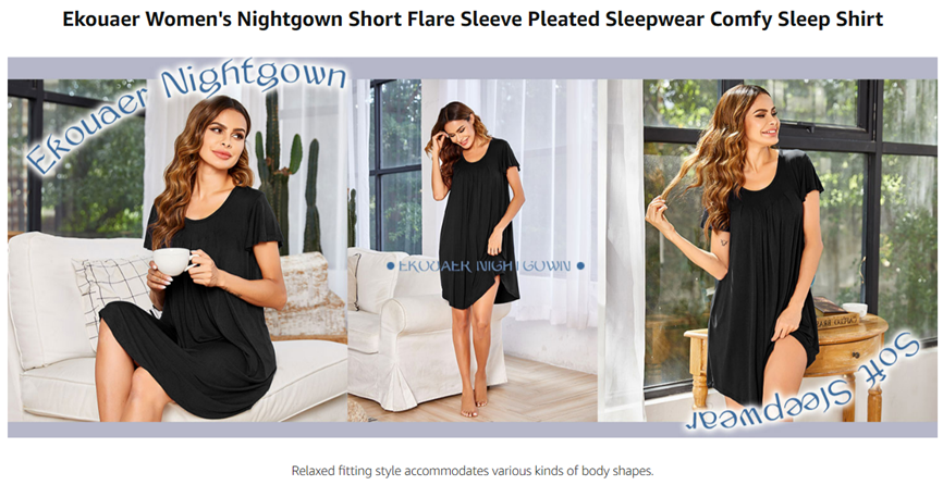 • ✿FIT ANY BODY TYPE: Ekouaer sleepwear pajama dress is made of super soft stretchy and skin-friendly fabric, breathable and relaxed nightshirt is never tight or constricting. Short flare sleeve nightshirt leaves more room for your arms, pleated design looks classic and elegant. Relaxed fitting style accommodates various kinds of body shapes.