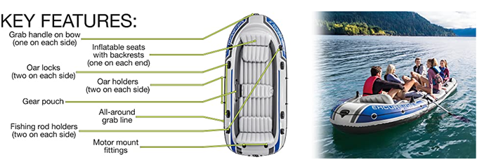Model Name | Excursion 5 Inflatable Heavy-Duty Fishing Boat Set with Aluminum Oars and High Output Air Pump |