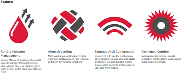 • Targeted zone cushioning in high impact areas for added comfort and comfort toe seam for reduced irritation
