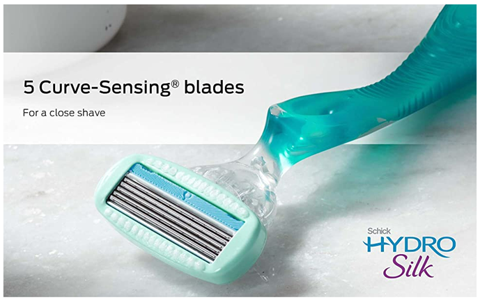 The Schick Hydro Silk sensitive razor is designed to handle even the most sensitive areas with the technology you expect count from a razor while being dermatologist tested for sensitive skin. Hydro Silk sensitive razor contains skin guards to reduce redness and irritation with 5 Ultra Glide blades. Hydro Silk sensitive razor finishes with high-gloss colored chrome and a soft touch rubber for gripping ease with an easy cartridge loading system.