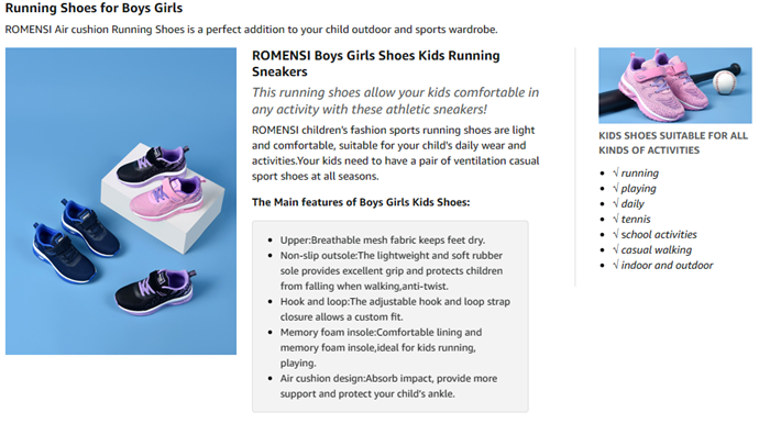 Air cushion design: Kids running shoes adopt an air cushion design to provide support and cushioning for the feet.