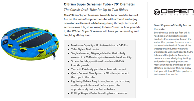 O'Brien Super Screamer 2 Person Towable Boating Tube