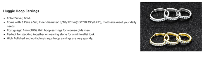 ❤PREFECT SIZE: : The Inner diameter of the cubic zirconia small hoop earring is 8/10/12mm and 2/3/4mm CZ stud earrings. Lightweight and Comfortable to Wear. 6 Different sizes suitable for Multi-Purpose Use in daily life. Not only can be as sleeper earrings, but also as Cartilage Earring Hoop.