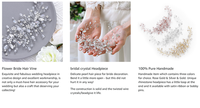 We born to design and create handmade wedding hair accessories for you. We are sparing every effort to make you more beautiful and charming. May your life be more joyful and colorful with our accompany.