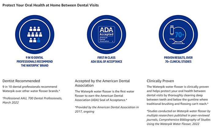 • DENTIST RECOMMENDED: 9 in 10 dental professionals recommend the Waterpik brand. Waterpik is clinically proven and the first water flosser brand to earn the American Dental Association (ADA) Seal of Acceptance.