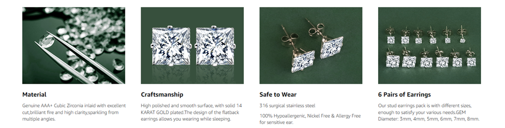 • Genuine AAA+ Cubic Zirconia which is flawless as man made with excellent cut, brilliant fire and high clarity. Classic stud earrings can enjoy them all day every day.
