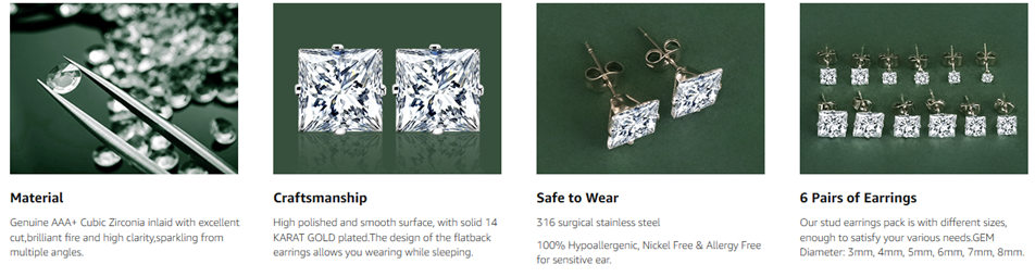 - Genuine AAA+ Cubic Zirconia which is flawless as man made with excellent cut, brilliant fire and high clarity. Classic stud earrings can enjoy them all day every day.
