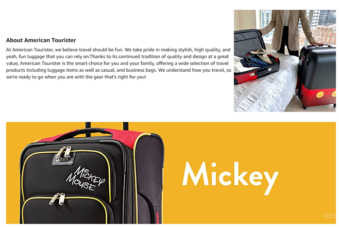 Show your love for your favorite Disney character with this hardside upright travel case from American Tourister. The American Tourister hardside is made from lightweight and durable ABS material and features a sleek hardside design with side-mounted skate wheels, a mono tube pull handle, and a top grab handle for easy lifting. The interior is fully lined and detailed with crisscross tie-down straps to hold clothing in place and a zip around divider that creates two separate packing compartments. This case is perfect for boys and girls on the go. Pack more fun with this Disney luggage!