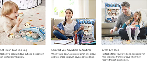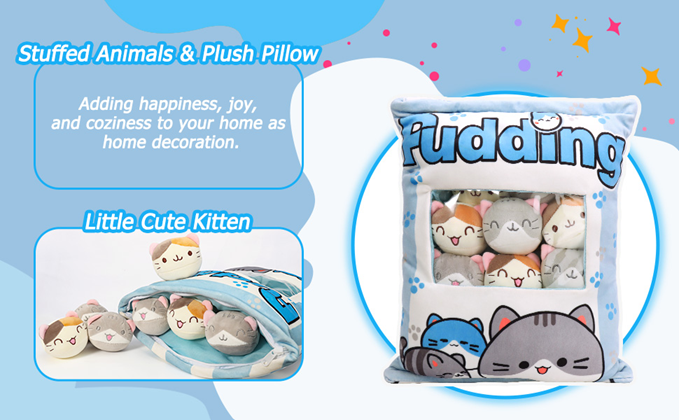 - 【Adorable Pillow with 8 Little Cat Dolls】There are 8 small stuffed cat plush dolls in each cute throw pillow. A bag of soft stuffed toys, so cute! Open the zipper, you will not only get a cute throw pillow, also you can get 8 lovely cat dolls. They are eye-catching for your kids and you can take them out as home decorations which will make your room more lively and cosy.