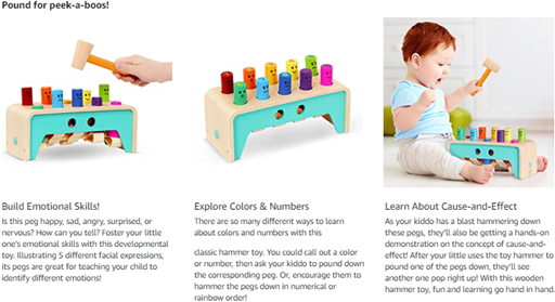 • Age: This wooden pounding bench is recommended for toddlers 1 year and up.