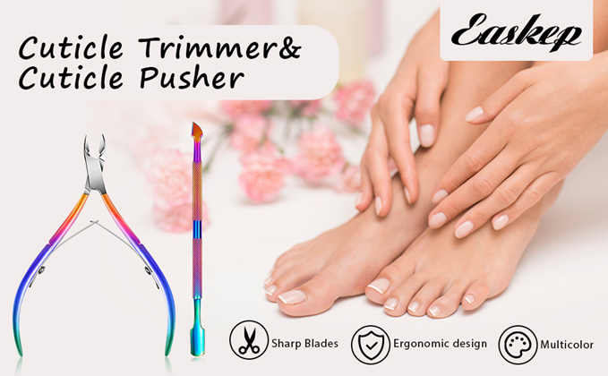 Easkep Cuticle Trimmer with Cuticle Pusher, Cuticle Remover Professional Stainless Steel Cuticle Cutter Nippers Rainbow Sharp Durable Pedicure Manicure Tools for Fingernails and Toenails