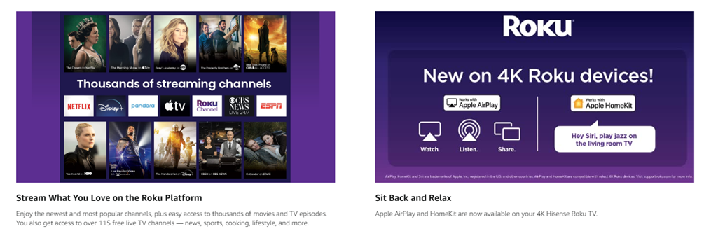 - Quickly access entertainment and control your TV with a Google Assistant or Alexa device (sold separately). With the touch of your remote or Roku mobile app, or a simple voice command, you can take control of your smart home, turn on and off the TV, change channels, and much more.