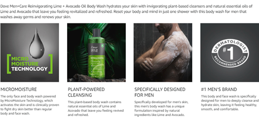Dove Men + Care Lime + Avocado Oil Body Wash for men hydrates skin while offering you a relaxing and invigorating shower experience. Made with natural essential oils and plant-based cleansers, this body wash washes away tough germs and moisturizes your skin. This essential shower gel delivers clean and comfortable skin in just one shower. This body wash does what it promises: it's tough on odor, but not on your skin. Hit the reset button for your body and mind from the moment you apply it and take in the natural scents of Lime and Avocado Oil. Sulfate-free and cruelty-free, this natural inspired body wash not only provides care for your skin, but also for the planet. Following Dove's global commitment to more sustainable packaging, we've designed every bottle to be recyclable and made with 100% recyclable plastic. And we're proud of what we've made. If you're looking for further proof, complete your grooming routine with the entire Dove Men + Care naturals range. Pair this body wash with the Dove Men + Care Eucalyptus + Birch Anti-Perspirant or the Dove Men + Care Eucalyptus+ Birch Dry Spray. Or try our Dove Men + Care Body Wash, available in purifying scents like Charcoal + Clove and refreshing ones like Eucalyptus + Cedar.