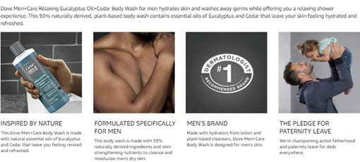 Dove Men + Care Eucalyptus Oil + Cedar Body Wash for men hydrates skin while offering you a relaxing and refreshing shower experience. Made with natural essential oils and plant-based cleansers, this body wash washes away tough germs and moisturizes your skin. This essential shower gel delivers clean and comfortable skin in just one shower. This body wash does what it promises: it's tough on odor, but not on your skin. Hit the reset button for your body and mind from the moment you apply it and take in the natural scents of Eucalyptus and Cedar. Sulfate-free and cruelty-free, this natural inspired body wash not only provides care for your skin, but also for the planet. Following Dove's global commitment to more sustainable packaging, we've designed every bottle to be recyclable and made with 100% recyclable plastic. And we're proud of what we've made. If you're looking for further proof, complete your grooming routine with the entire Dove Men + Care naturals range. Pair this body wash with the Dove Men + Care Eucalyptus + Birch Anti-Perspirant Spray or the Dove Men + Care Dry Spray Eucalyptus+ Birch. Or try our Dove Men + Care Body Wash, available in purifying scents like Charcoal + Clove and invigorating scents like Lime + Avocado Oil.