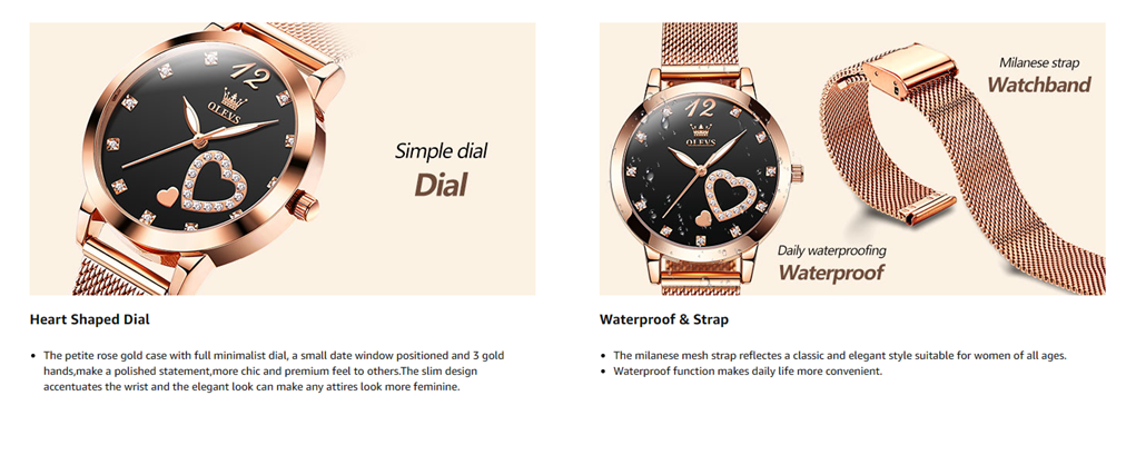 Special features | back-up-battery,Casual Womens Watch Gold Slim, Second hand, World time, dual-Time-display, Shock resistant |