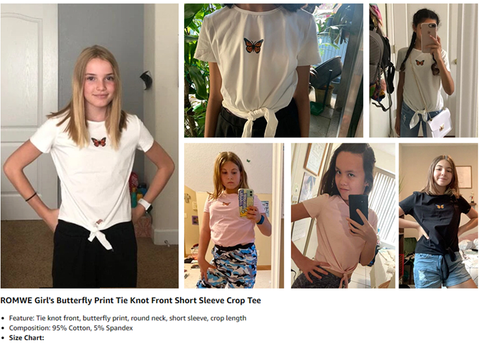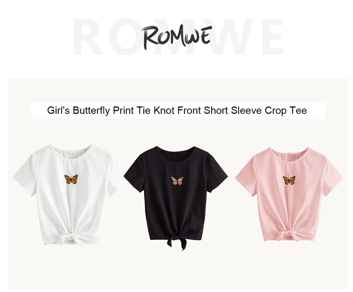 Romwe Girl's Casual Butterfly Print Short Sleeve Tie Knot Front T Shirt Tee Tops