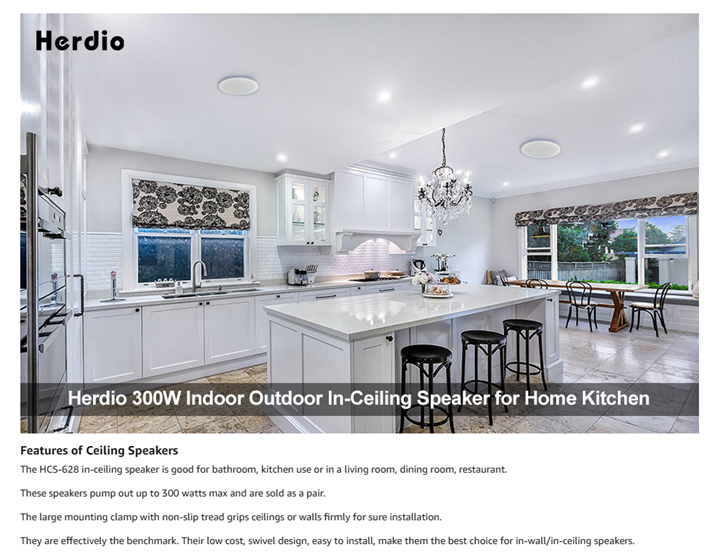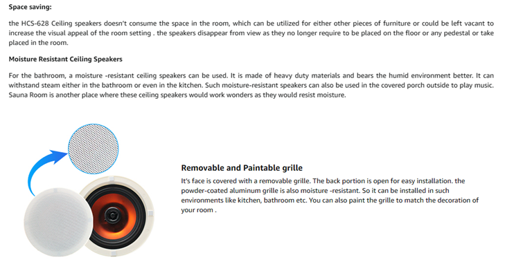 - Easy to install:Listen to your favorite music in any indoor or enclosed space including a bathroom, kitchen,office,shop,classroom or a covered porch with the speaker's MOISTURE-RESISTANT DESIGN