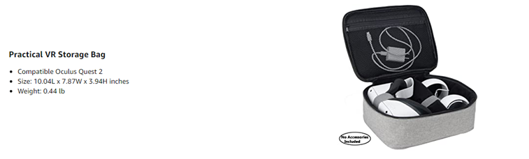 • Size: 10.04L x 7.87W x 3.94H inches. Weight: 0.44 lb. Suitable for taking this carrying case with Oculus Quest 2 VR for travel, office, playful activities. Not Compatible with Elite Strap.