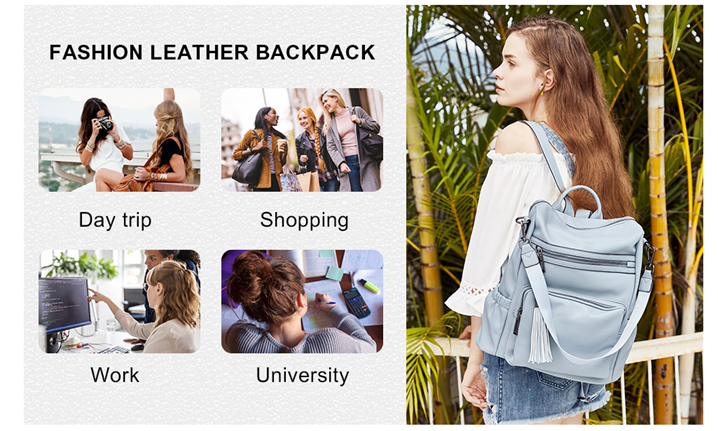 • 【VEGAN MATERIAL】: The pocket fashion leather backpack is Made of PU leather material with reinforced stitching, gun-tone hardware, soft fabric lining, delicate tassel designed for fashion appearance and adjustable canvas shoulder straps for convenience.