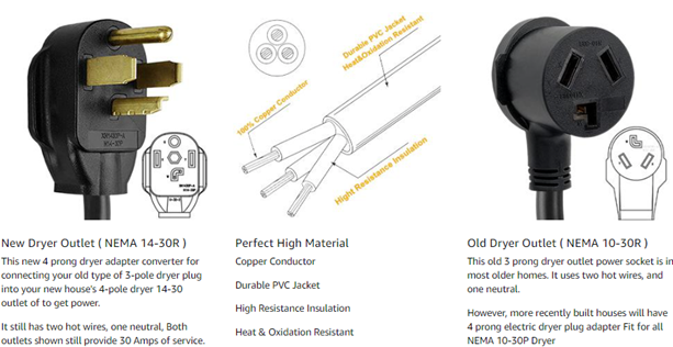 - 【High quality】Buy a new Dryer? Hire an Electrician? You neither have to hire electrician to take your dryer apart to get the cord rewired, nor have you to buy a new electric clothes dryer. you have to do is plug it in, perfectly simple.10AWG dryer power cord made of copper with UL approved for PVC wire in UL 62 standard Support Max 30 Amp.