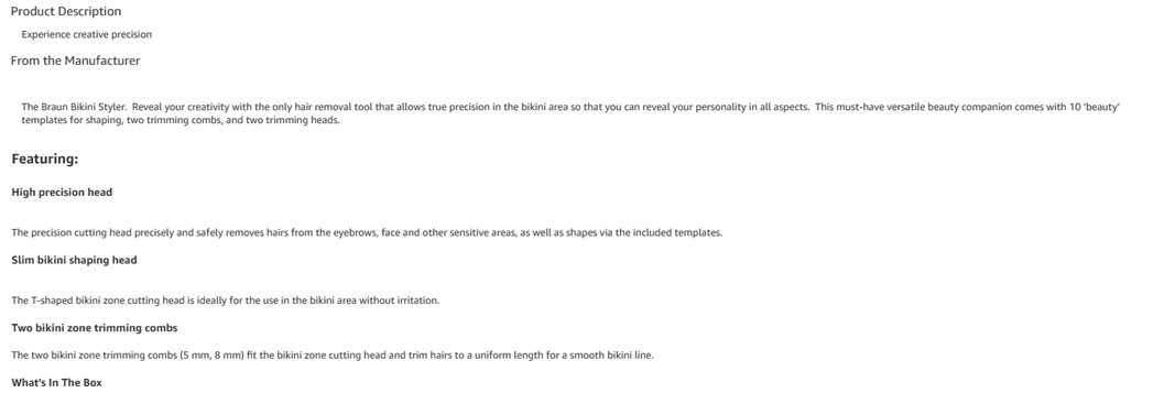 Shape your bikini zone: the slim bikini shaping head is designed for shaving precise lines, shapes or contours.