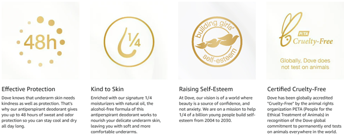 • Certified cruelty free: Globally, Dove deodorant does not test on animals and is certified cruelty-free by PETA
