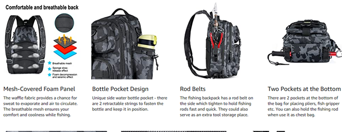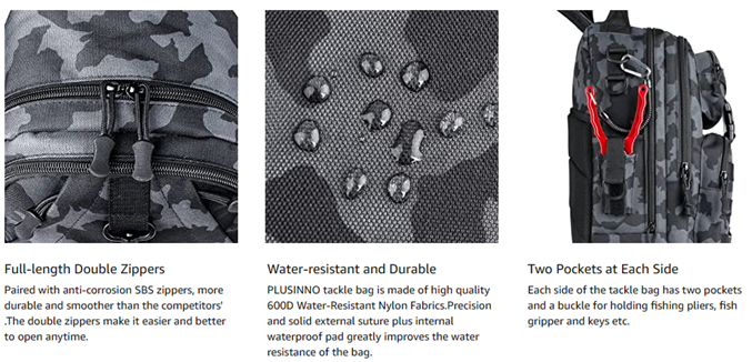 - 【WATER-RESISTANT & DURABLE】-Made from high quality, water-resistant 600D high density nylon fabric with extra firm stitching to stand up to the different uses and fishing styles of our customers across the world. The abrasion resistant and indestructible buckle and full-length double zippers are considerably more durable than other competitors' backpack. It’s not even close.