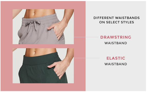 WIDE WAISTBAND- Wide elastic waistband allows for a comfortable, secure and perfect fit