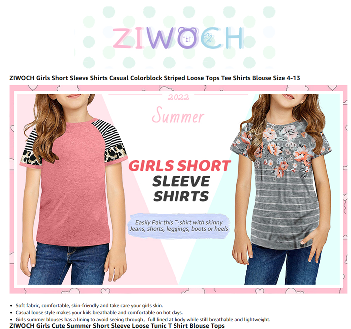 ZIWOCH Girls Clothes Short Sleeve T Shirts Casual Color Block Striped Loose Girls' Tops Tees & Blouses 4-13 Years Old Summer