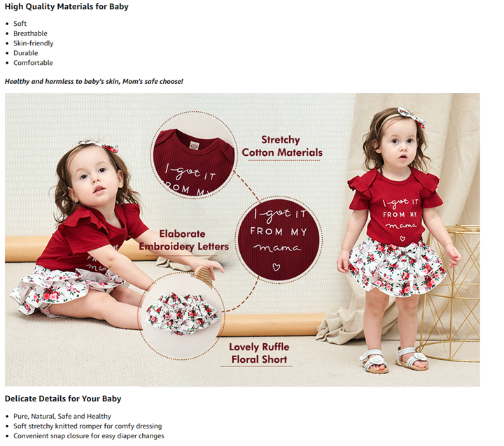 • High Quality: Cotton ribbed baby girl romper shorts set bring comfortable feelings. Soft, safe and harmless to baby's skin. Pretty baby girl clothes for gifts.
