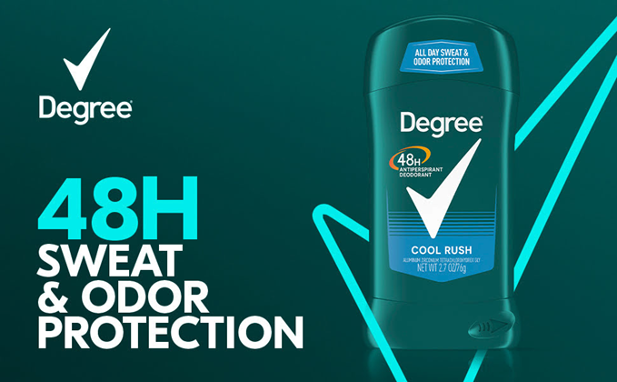 - Degree’s Cool Rush antiperspirant deodorant with 48H non-stop protection, non-stop confidence, making it one of their best deodorant for men that’s strong enough to keep up with you all day