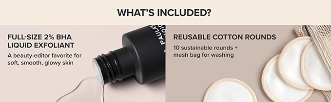 SUSTAINABLE SKIN CARE: Take exceptional care of your skin & the planet with this eco-friendly set. It includes the iconic 2% BHA Liquid Exfoliant & our exclusive Reusable Cotton Rounds to give you a flawless application again & again.