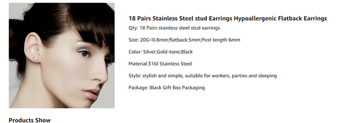 - Hypoallergenic Stainless Steel Earrings-----Made of the 316L Stainless Steel Ideal for sensitive ears, Nickel-free and Lead-free, Harmless to Human Body. High Polished and Smooth Surface Comfortable to Wear It. 20Gauge(0.8mm), 5mm flat back can make more people suitable for wearing, or you can share it with your friends and family.