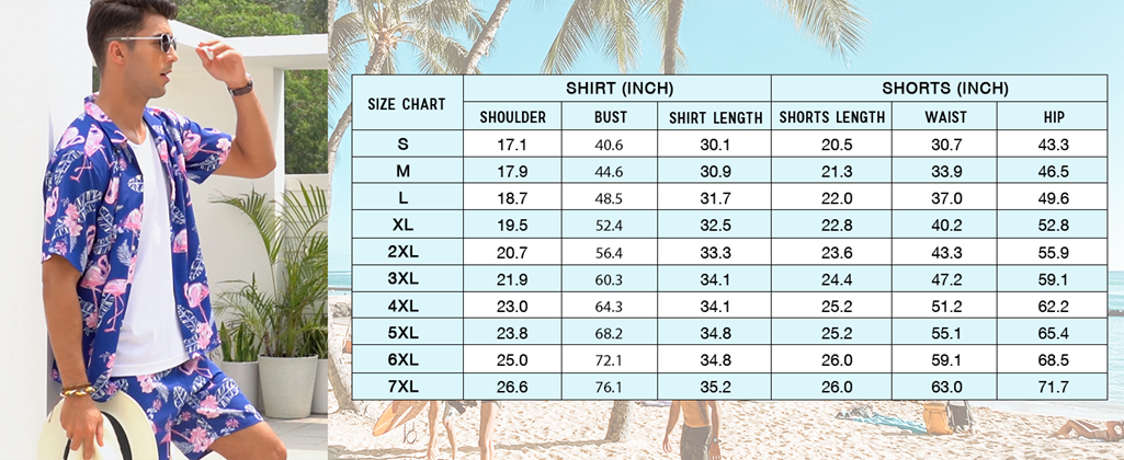【Style & Size】:Our Hawaiian Shirt Suits are regular fit, suitable for most body shapes, S-7XL size is available.If you like loose fit, you can choose a size one size larger.