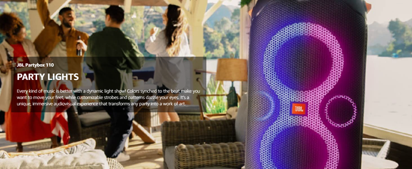 - POWERFUL JBL ORIGINAL PRO SOUND: Whether you're at home or outdoors, the JBL PartyBox 110 makes your music amazing with two levels of deep, adjustable bass and 160W powerful JBL Signature Sound.