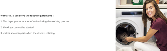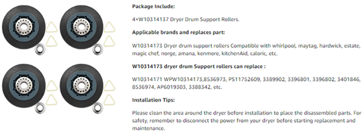- High Quality:W10314173 is made of high-quality metal and rubber.It has undergone long-term testing and inspection by the manufacturer. w10314173 complies with OEM standards, it is quiet and durable can perfectly fit your dryer, please rest assured to buy and use.