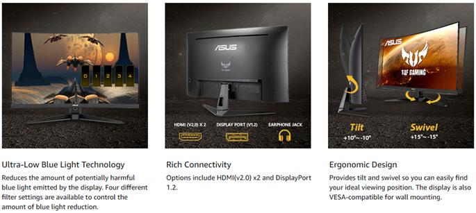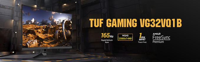 Designed for fast-paced games, the TUF Gaming VG32VQ1B is a 31.5” curved gaming display that boasts a 165Hz refresh rate. Equipped with Extreme Low Motion Blur (ELMB), VG32VQ1B eliminates motion blur for a smoother gaming experience, while FreeSync Premium technology eliminates screen tearing and choppy frame rates.