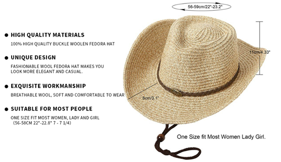 Durable and versatile: Made with high-quality straw material that provides excellent breathability and moisture-wicking properties. Suitable for ideal conditions, perfect for all outdoor activities, and offers exceptional protection from the sun.