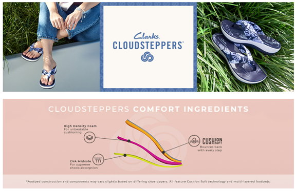 - Offering the best of comfort technology, our ever-popular Cloudsteppers toe post flip-flop Arla Glison combines sports-inspired styling with a playful starfish print and classic feminine appeal