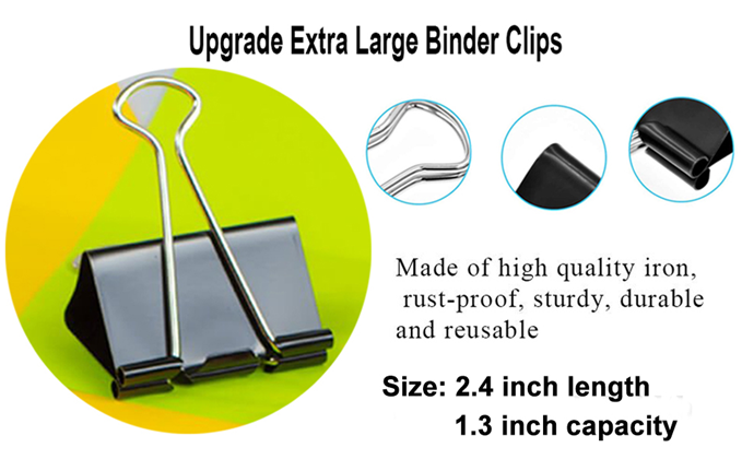 - Sturdy: Jumbo binder clipsmade of tempered steel are durable, rust-resistant and reusable for lifetime