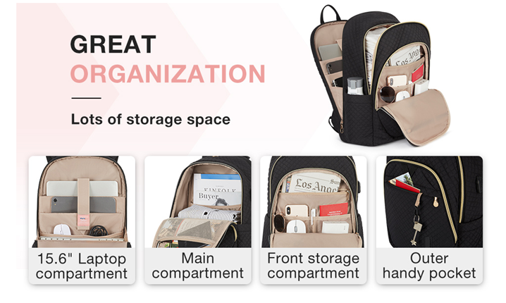 - Large Capacity: Dimensions 18.5 * 12.5 * 7 inches, The laptop backpack has multiple divider pockets, The laptop compartment with anti-theft zippers is suitable for a laptop up to 15.6", padded with EVA foam can offer optimal protection for your laptop. Tablet slot fits up to 12.9’’ iPad. Mesh pockets for mouse, adapter, and charging cord. Large main compartment roomy for daily necessities, such as A4 folders, textbooks, magazines, chargers, power bank and clothes