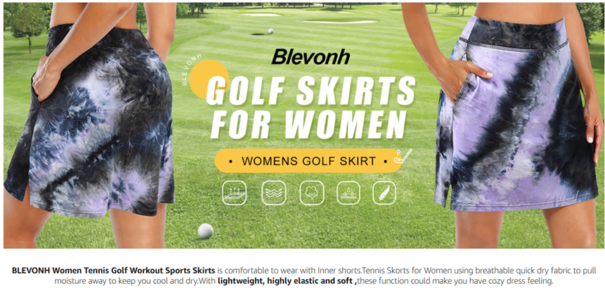 BLEVONH Women Knee Length Golf Skirts Soft Casual Tennis Skorts Inner Shorts