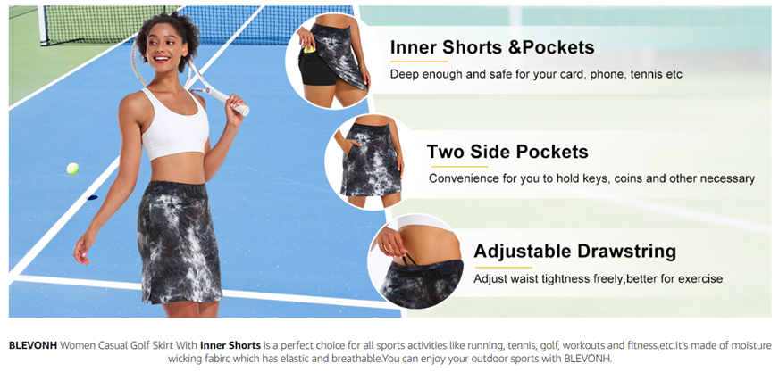 • Inner Drawing: Skorts skirts for women comfortable elastic waist with adjustable inner drawing provides for a better fit.