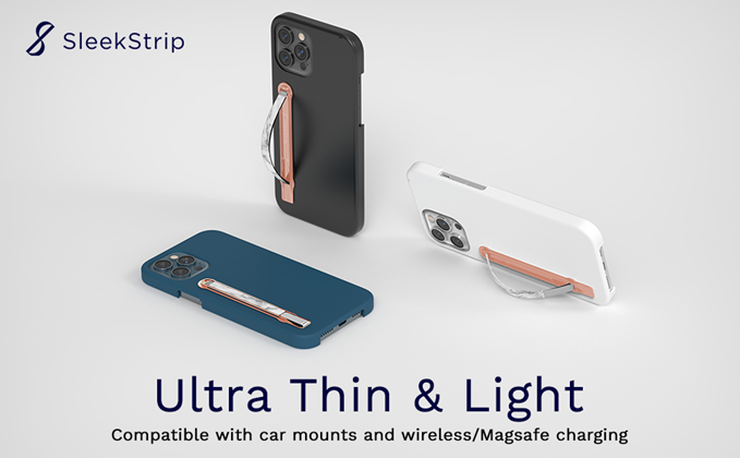 Don’t let your phone slip from your fingertips. Say goodbye to dropping your phone with a stylish SleekStrip’s Grip Strap.