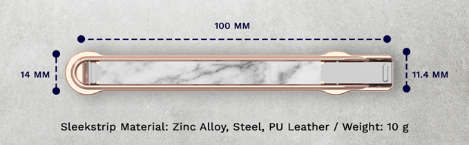 Burn risk: Placing SleekStrip® too close to the center of the phone (where the wireless charging coil is located) may cause SleekStrip® to become hot during wireless charging. Please follow our User Guide to install SleekStrip® properly. SleekStrip® CAN NOT adhere well to fabric surfaces, or frosted glass. For smooth glass or silicone surface, must use the Auxiliary Adhesive Film before attaching SleekStrip®. When removing SleekStrip®, weak/fragile/delicate surfaces such as leather might be damaged. Use at your own discretion. When removing SleekStrip®, DO NOT use sharp metal edge (such as a knife) to pry off SleekStrip®. Doing so could cause injury or damage to the phone. Please follow our User Guide to remove SleekStrip® properly. When removing SleekStrip®, DO NOT pull up SleekStrip® vertically. Doing so could damage phone’s back panel. Please follow our User Guide to remove SleekStrip® properly. Aa