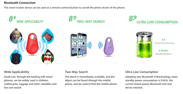 - 【Multi-function】Anti-lost alarm, Smart tracking device, remote control self-portrait. Works as a remote shutter for self-portrait, You can remote control the smart phone camera of your with press on the finder button