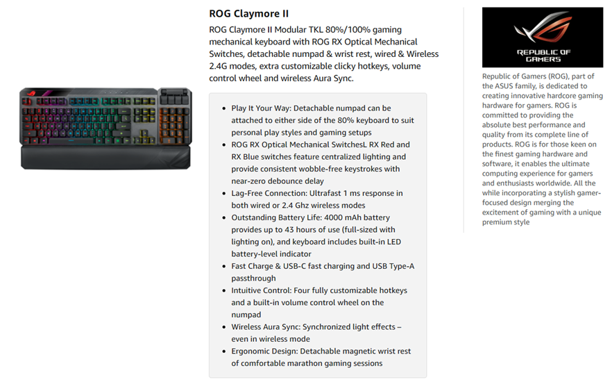 Item model number | MA02 ROG CLAYMORE II/RD/US |
